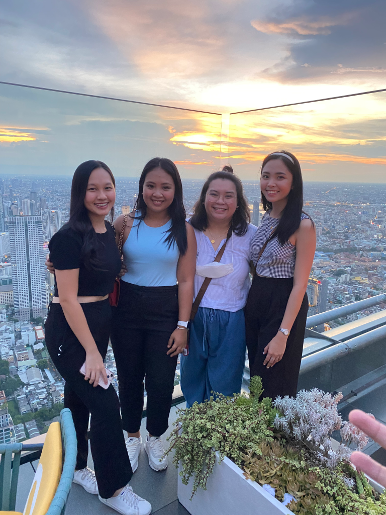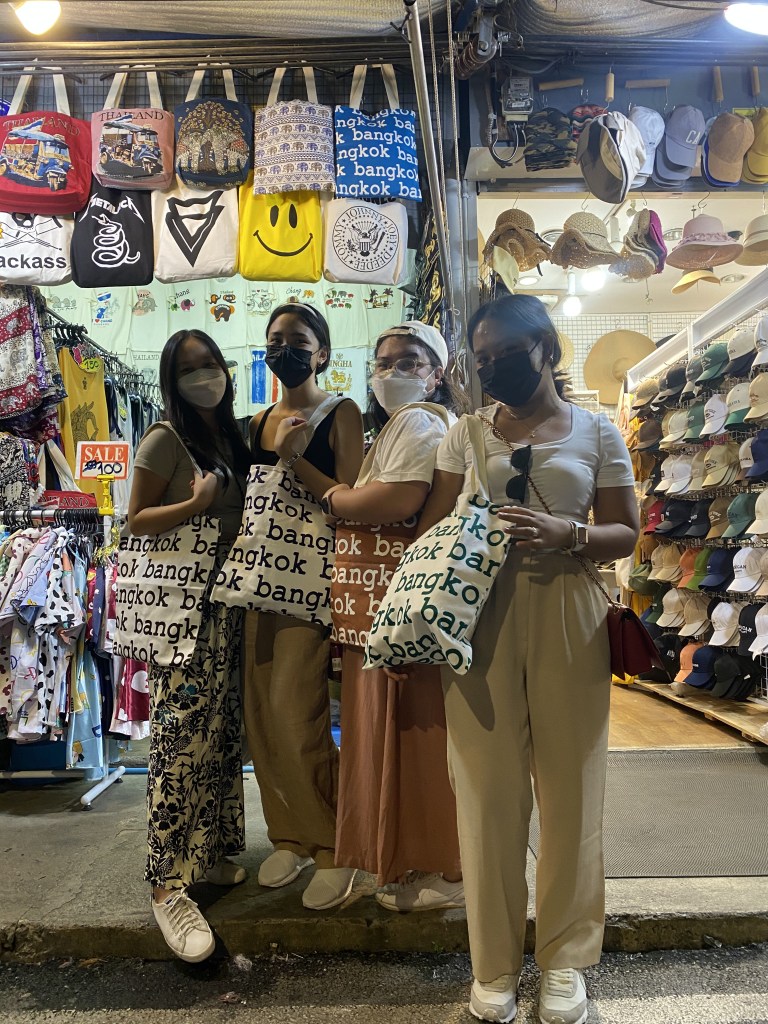Let’s not forget about the iconic Mahanakhon Observation Deck! We hit up this spot for the ultimate city view from the roof deck. Then, we went to Siam Paragon, ate at the food court, and there was a specialty store where you can customize bead bracelets, so we did! Super cute! Of course, we also went to Chatukchak, bought souvenirs, and a matching canvas bag.